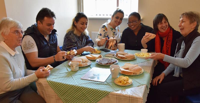 RADAR members taking tea with asylum seekers.